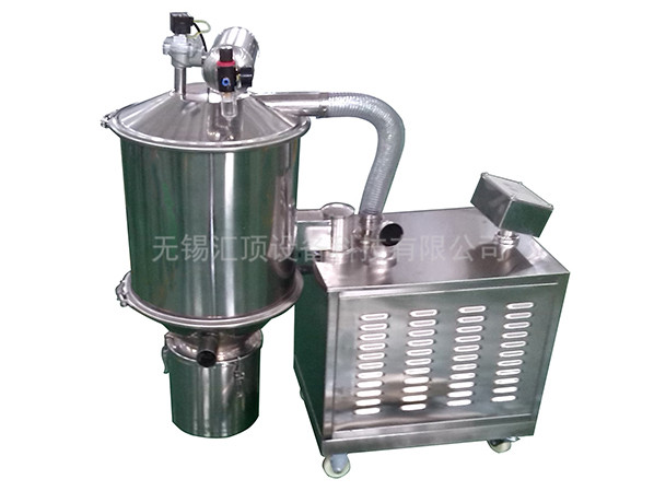 真空上料機(jī)中裝有壓縮空氣反吹裝置,每次放料時(shí),壓縮空氣脈沖反吹過(guò)濾器,把吸附于過(guò)濾器表面的粉末打落下來(lái),以保證吸料能正常運(yùn)行。