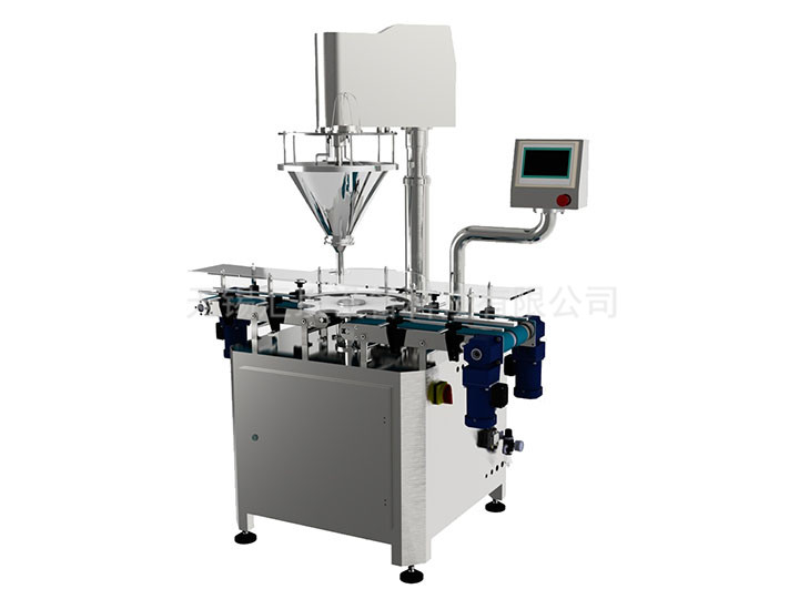 3. 伺服電機(jī)帶動托盤升降,升降速度可任意設(shè)定,充填時基本上無粉塵揚(yáng)出污染環(huán)境。