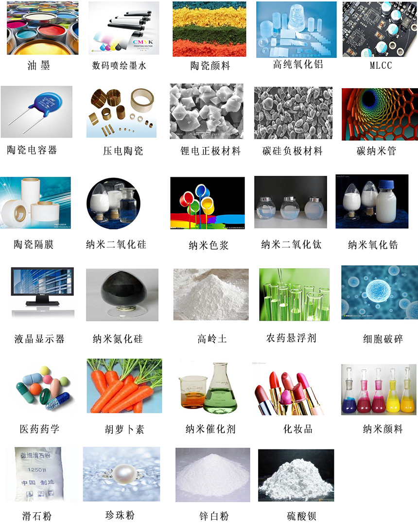 陶瓷材料、電池材料、數碼噴墨、高性能涂料、制藥等領域的研究與測試。